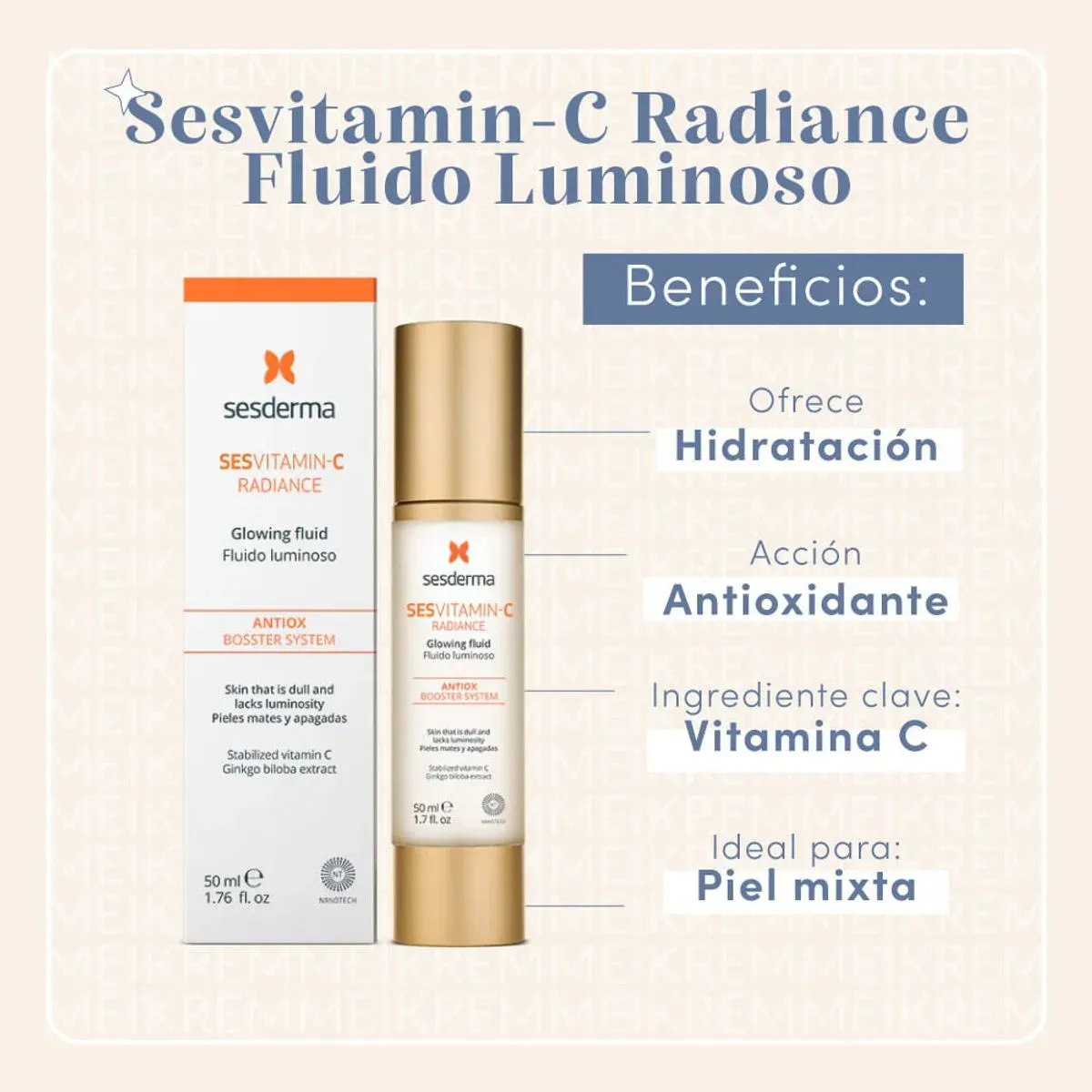 Sesderma Pack It’s Wow Time Luminosidad Es un pack revitalizante con Vitamina C encapsulada para devolver la luz y la vitalidad natural a la tez. El pack contiene Sesvitamin-C Sérum Liposomado x50ml y el Sesvitamin-C Fluido Luminoso x50ml que contienen activos en liposomas que maximizan la efectividad de la acción antioxidante, hidratante y antiarrugas